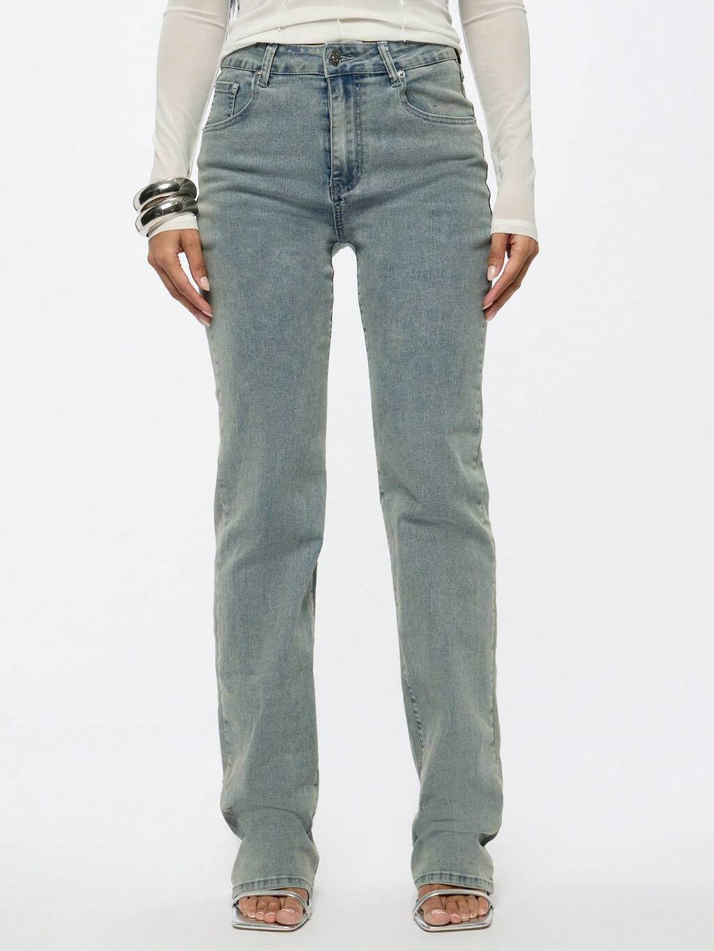 SUMWON WOMEN High Rise Stacked Straight Leg Jeans Classic Y2K Style Spring Summer Light Wash Denim Pants Versatile Casual Everyday Bottoms