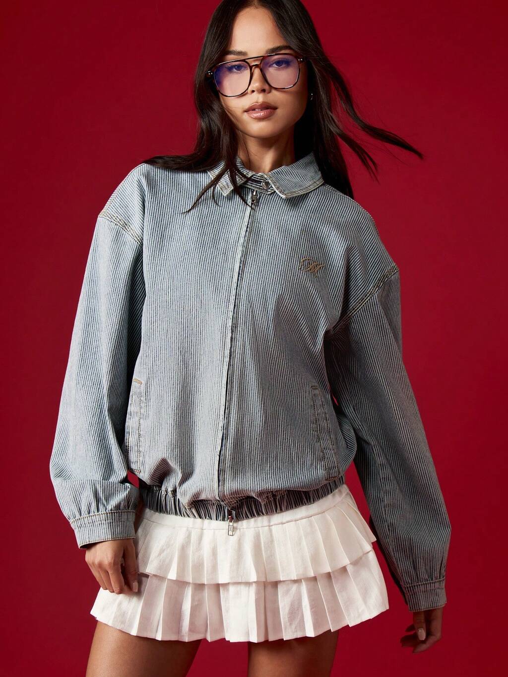 MISSGUIDED Pinstripe Denim Bomber Jacket With Elastic Waistband