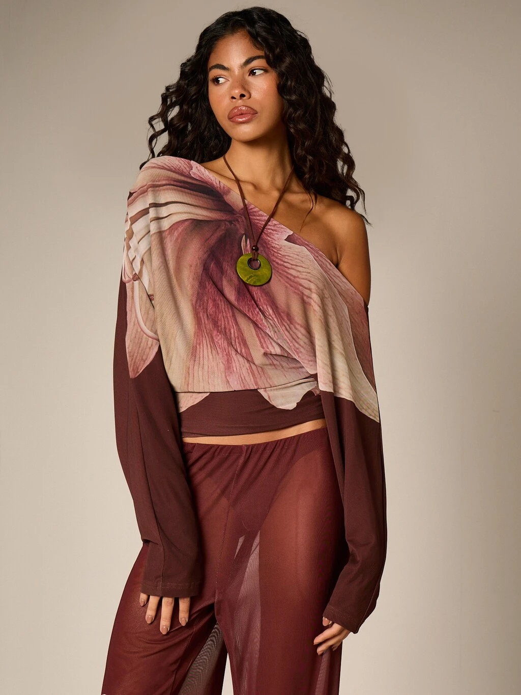 AiiRZ Floral Off Shoulder Long Sleeve Top With Botanical Print And Flowing Silhouette For Fall Fashion