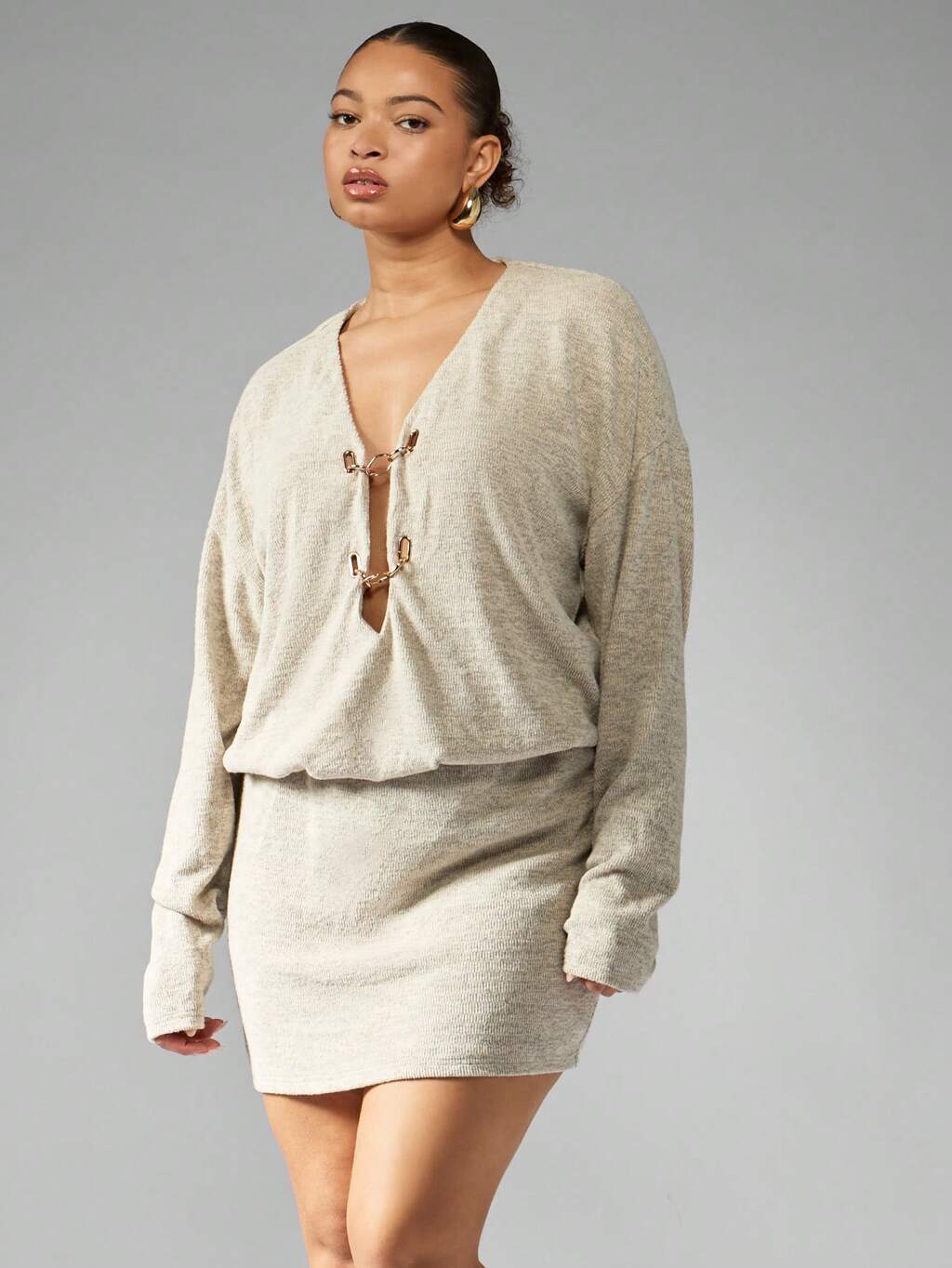 MISSGUIDED PLUS Plus Size Chain Link Detail Brushed Ribbed Mini Dress