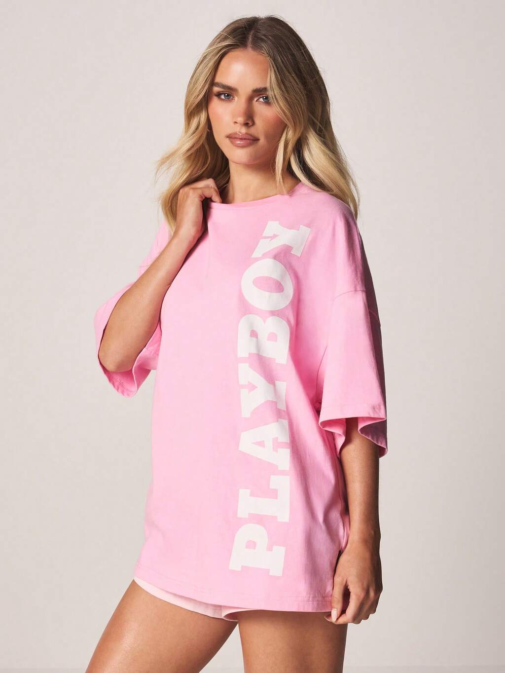 Missguided x Playboy Oversized Graphic Crew Neck T Shirt