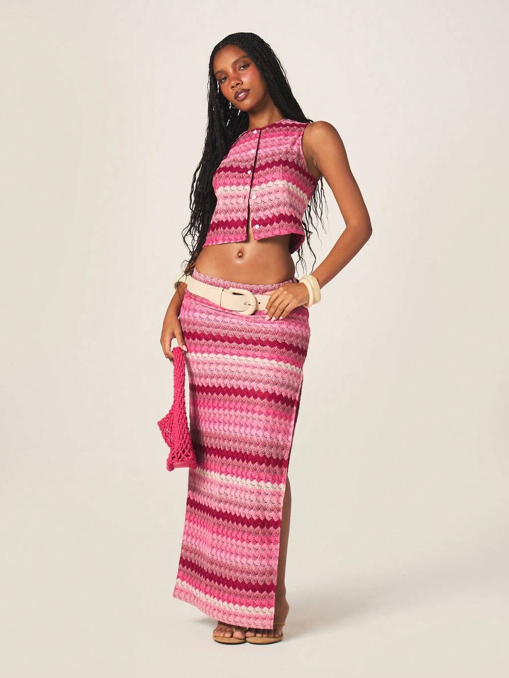 MISSGUIDED Crochet Striped Vest Top And Maxi Skirt Set