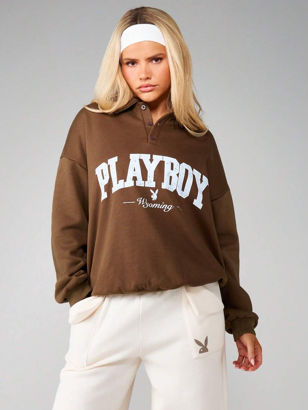 Missguided x Playboy Wyoming Polo Sweatshirt With Buttons