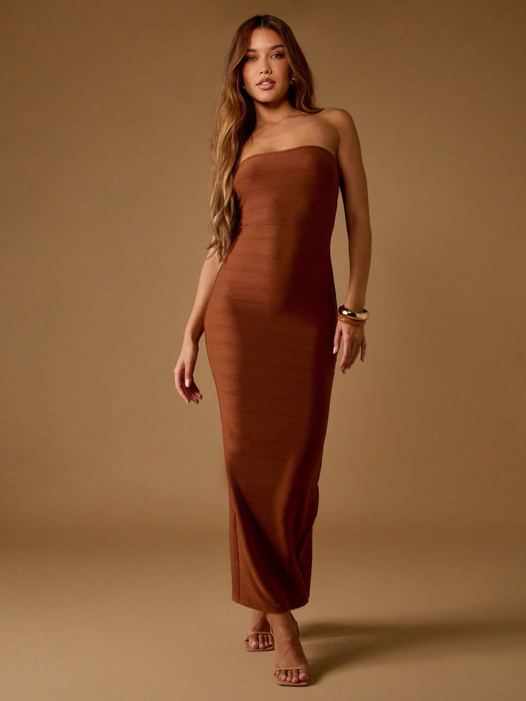 MISSGUIDED Trägerloses, geripptes, figurbetontes Maxikleid mit Schlitz auf der Rückseite