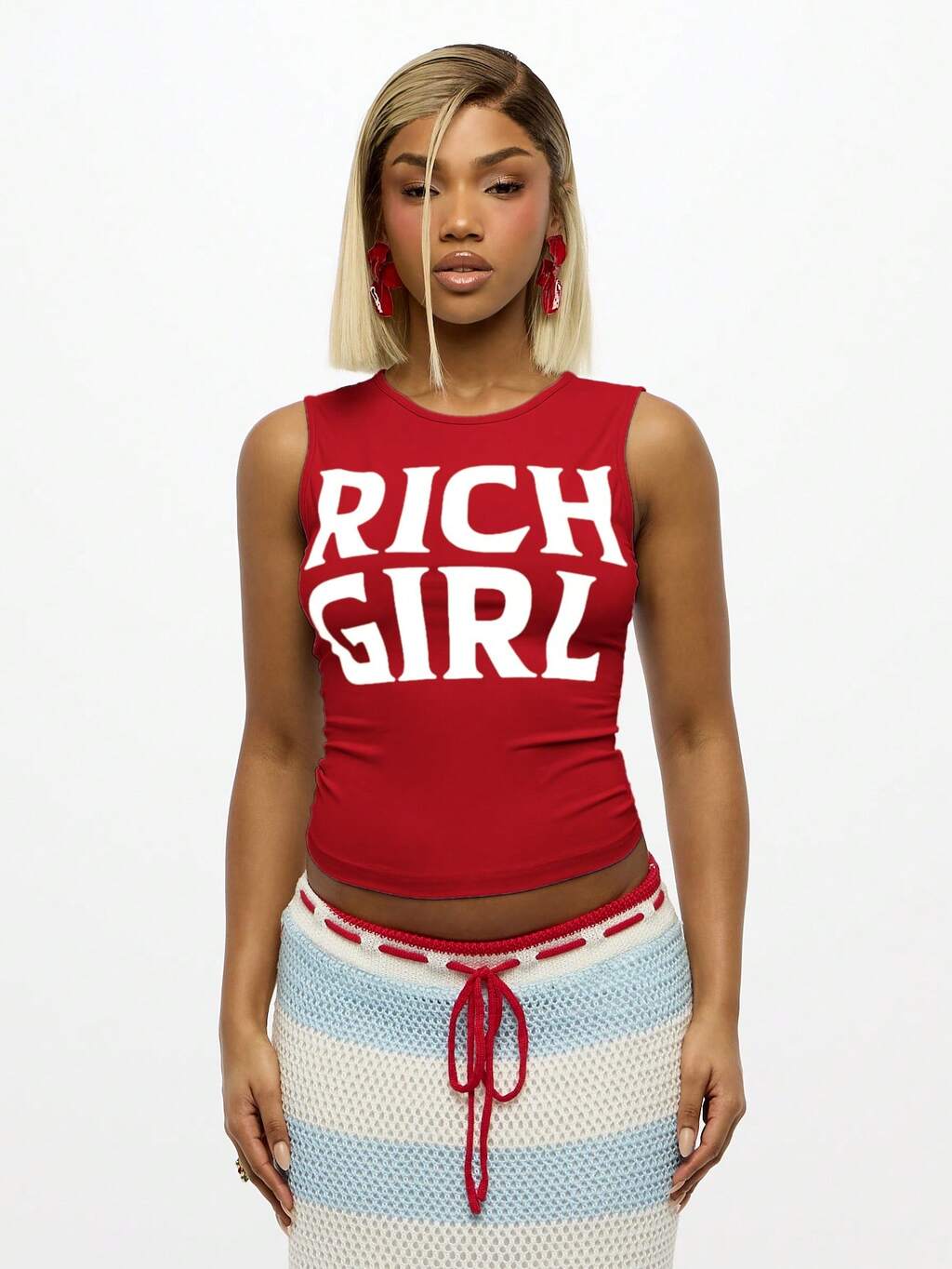 SUMWON WOMEN Grafik-Text Tank Top "Rich Girl" lässiger Sommer Festival Statement ärmellos Crop Top Straßenmode