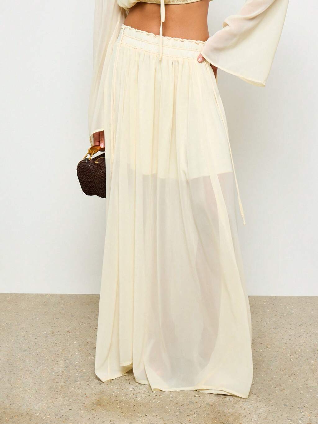 AiiRZ Eleganter Chiffon Maxirock mit kaskadenartigen Rüschendetails, bodenlang für Abendpartys, Hochzeitsgäste, besondere Anlässe, transparente Überlagerung, modische Statement-Langrock