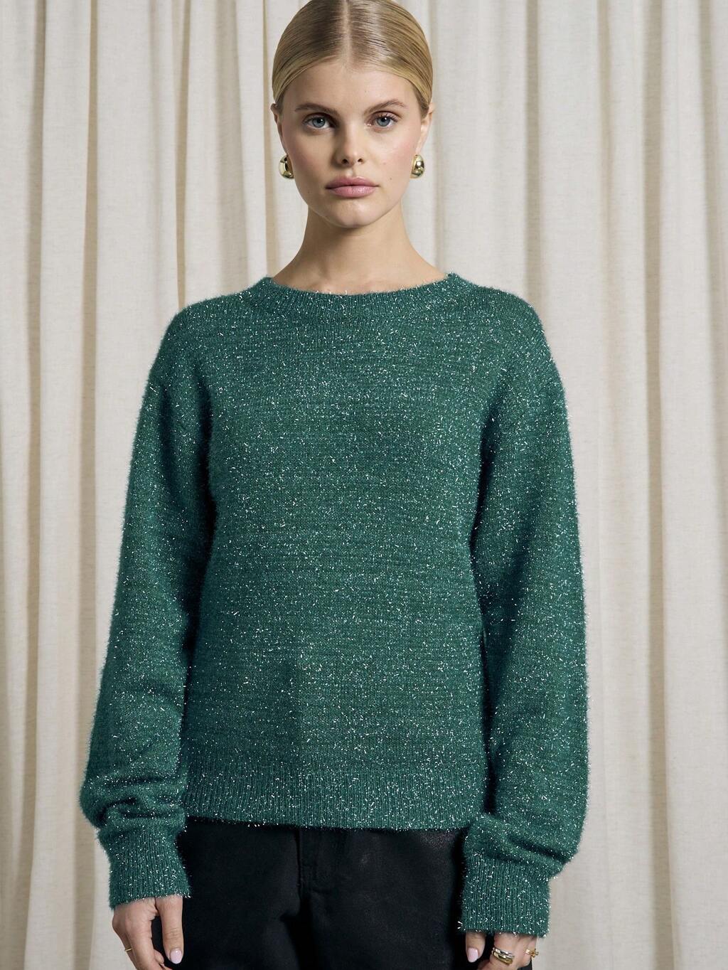 AiiRZ Festlicher Feiertags-Glitzer Lametta Strick Pullover mit Ballonärmeln Winterpartykleidung Woll-Mischgewebe Metallic Glanz Sweatshirt klassisch kuschelig