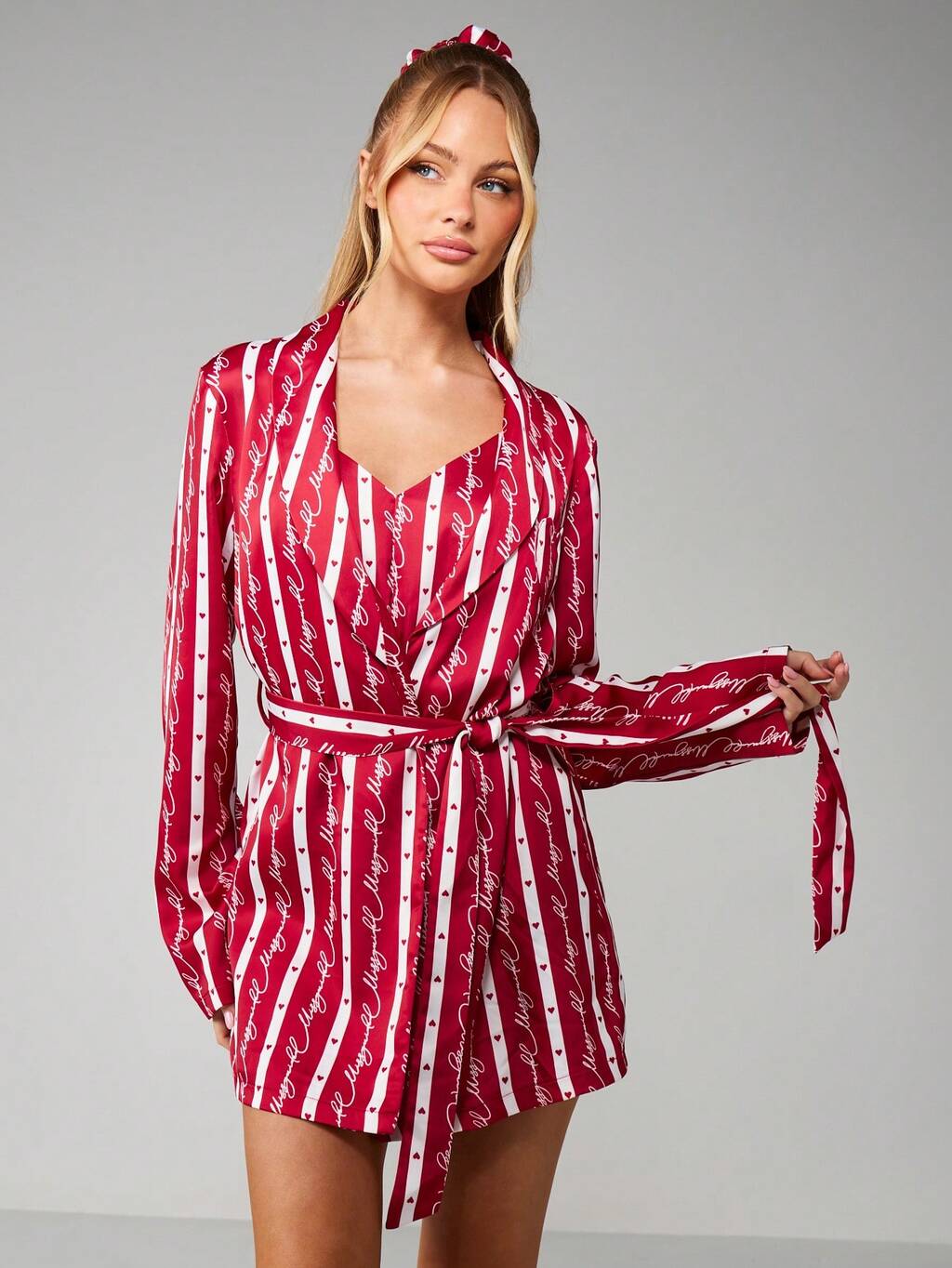 MISSGUIDED Weihnachts-Bademantel mit Streifen und Gürtel