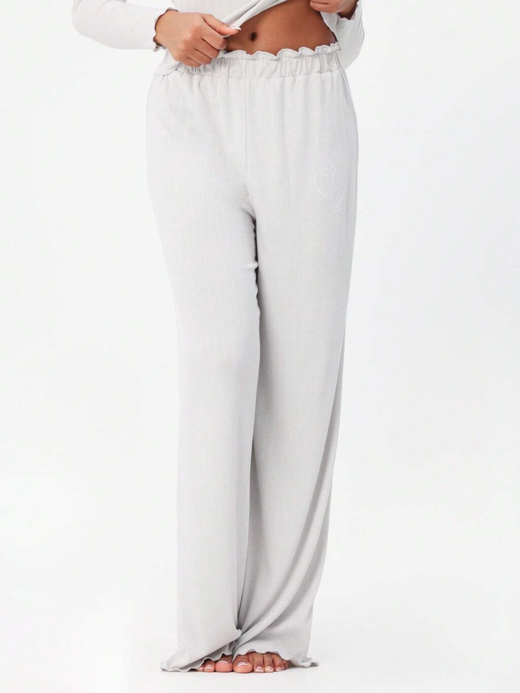 BABYPHAT Damen Gerippte Strick Weite Bein Lounge Hose mit Elastischer Taille Kordelzug, Bequeme Pyjama Hose, Schlafanzug Hose mit Relaxed Fit, Loungewear