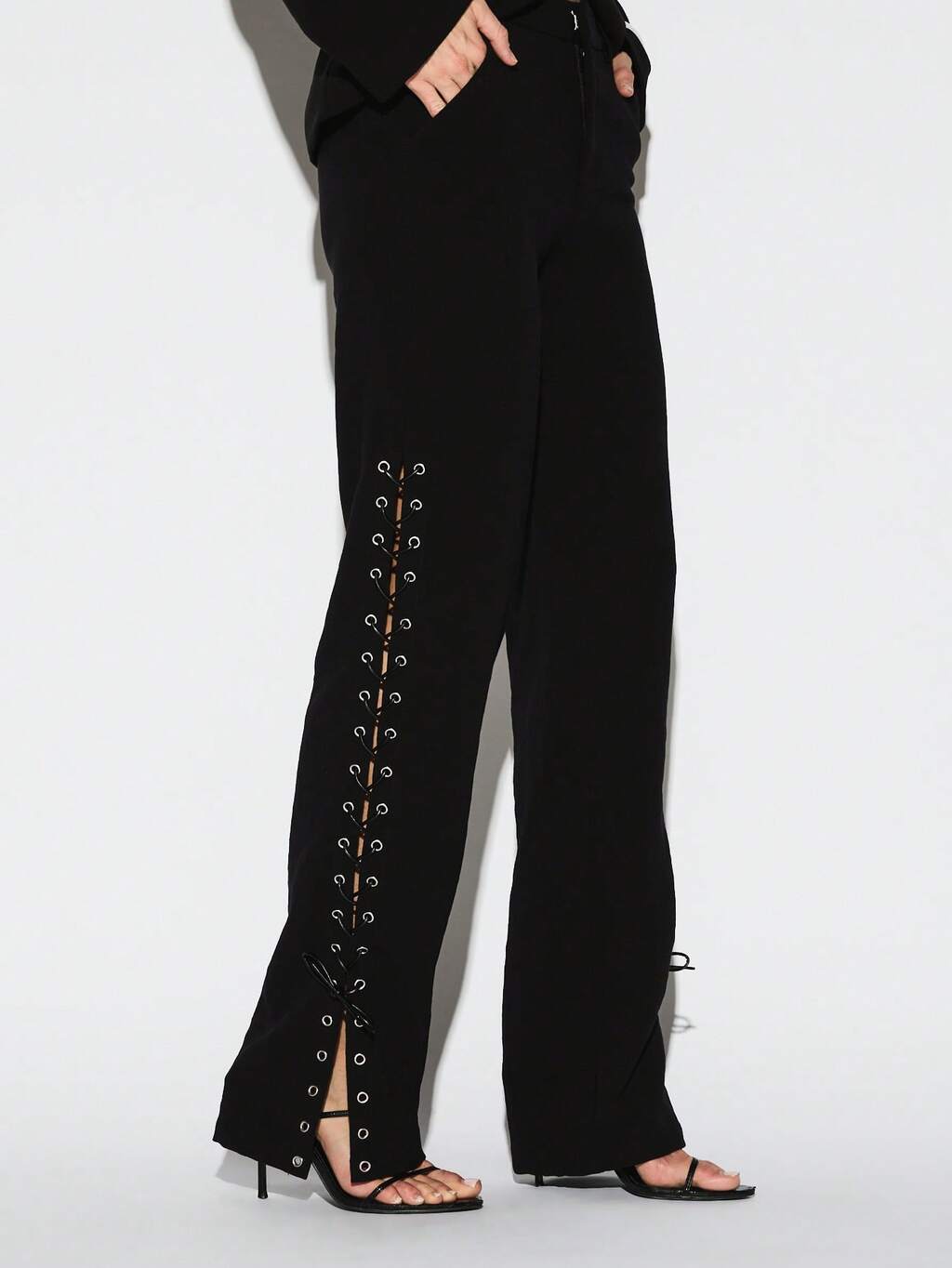 KIZN Weite Palazzo-Hose mit Schnürdetail und seitlichem Ösen-Verschluss, Ganzlänge, hoher Bund, lässige Modehose
