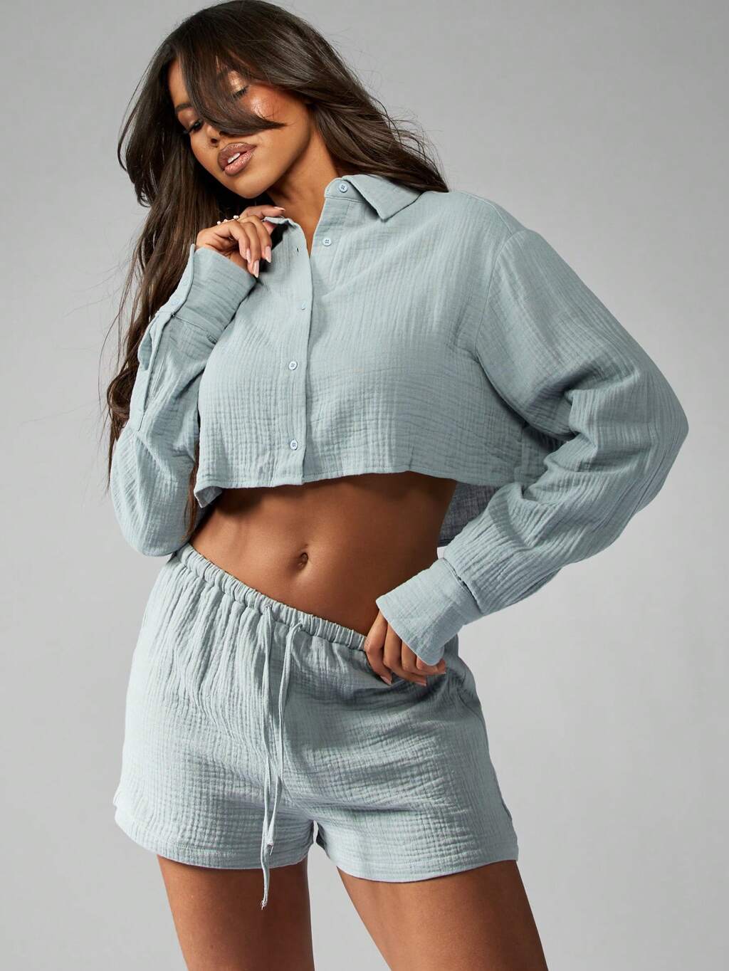 MISSGUIDED Käsetuch-Baumwollmischung Blusen Button-Down Langarm