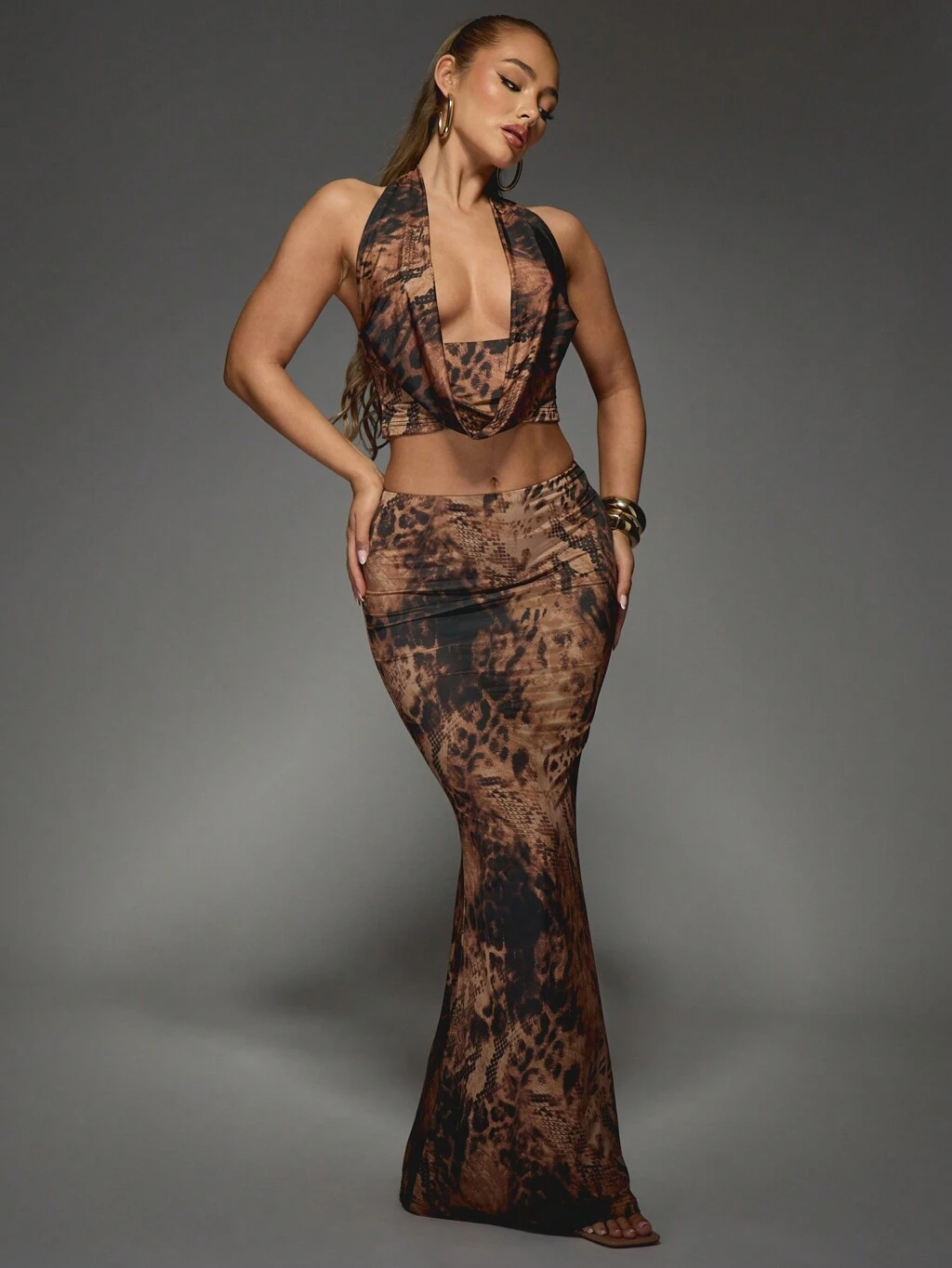 MISSGUIDED Tiger Muster Plunge Neckholder Rückenfreies Maxikleid