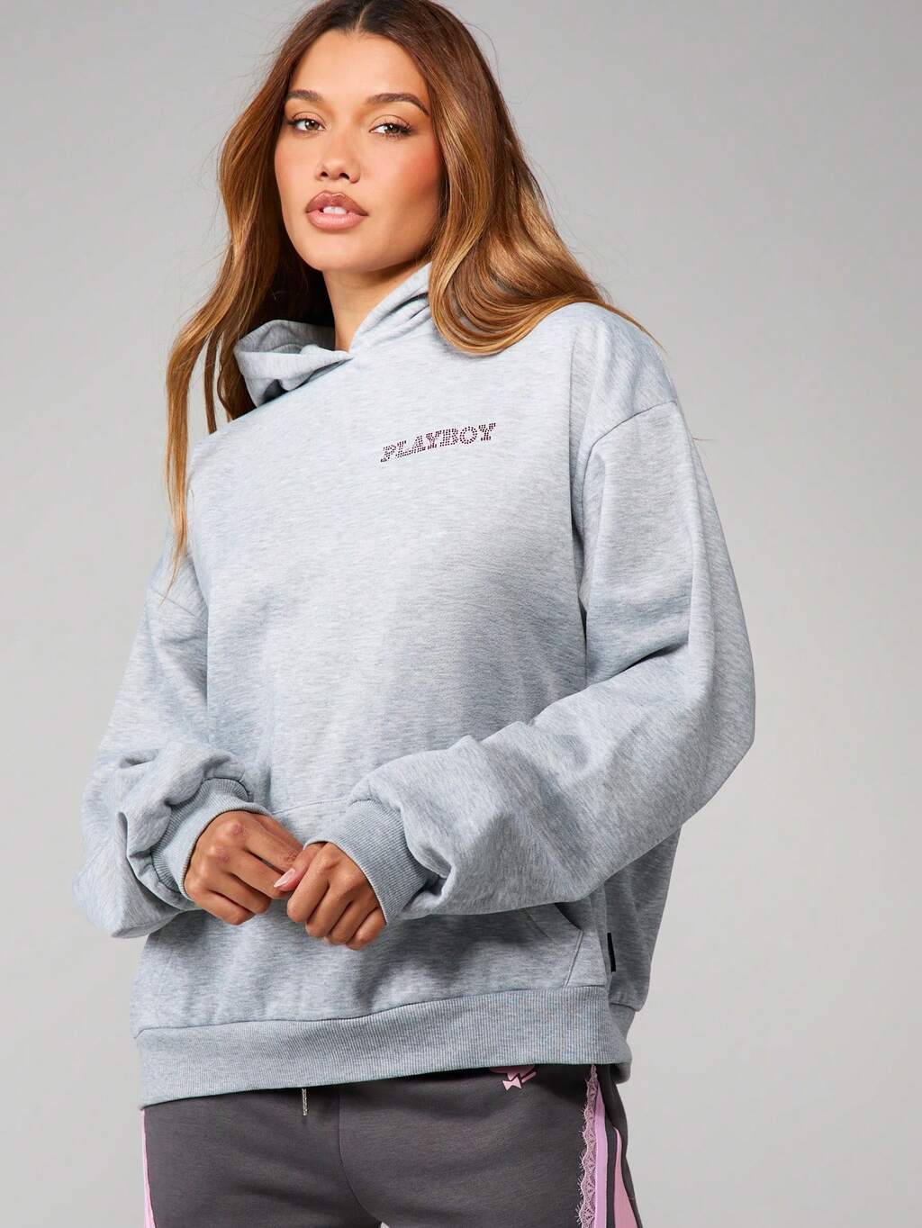 Missguided x Playboy Übergroßer Hoodie mit Strassverzierungen