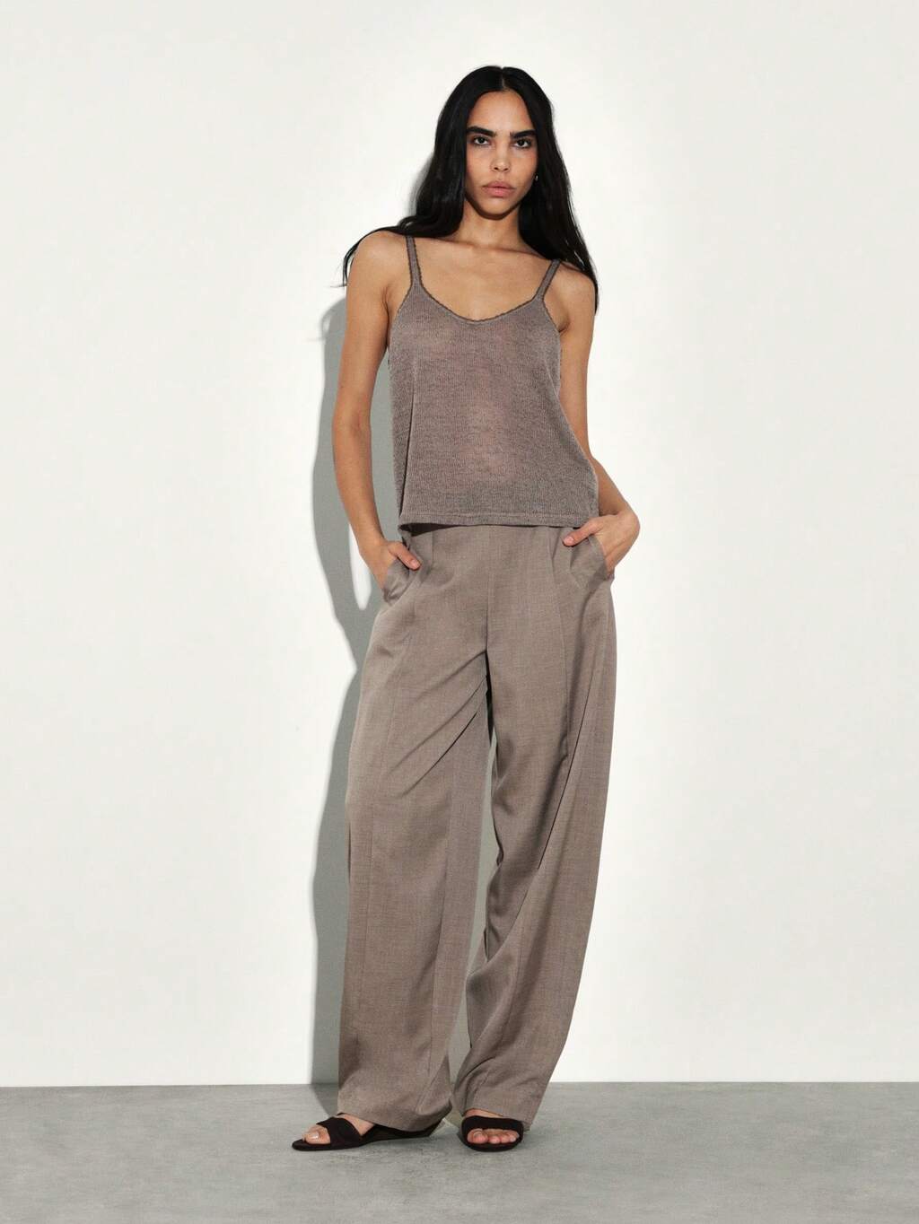 KSTM Damen Geripptes Strick-Trägertop mit V-Ausschnitt, ärmelloses Camisole, lässiges Sommer-Basisshirt, locker geschnitten, Alltagsessential