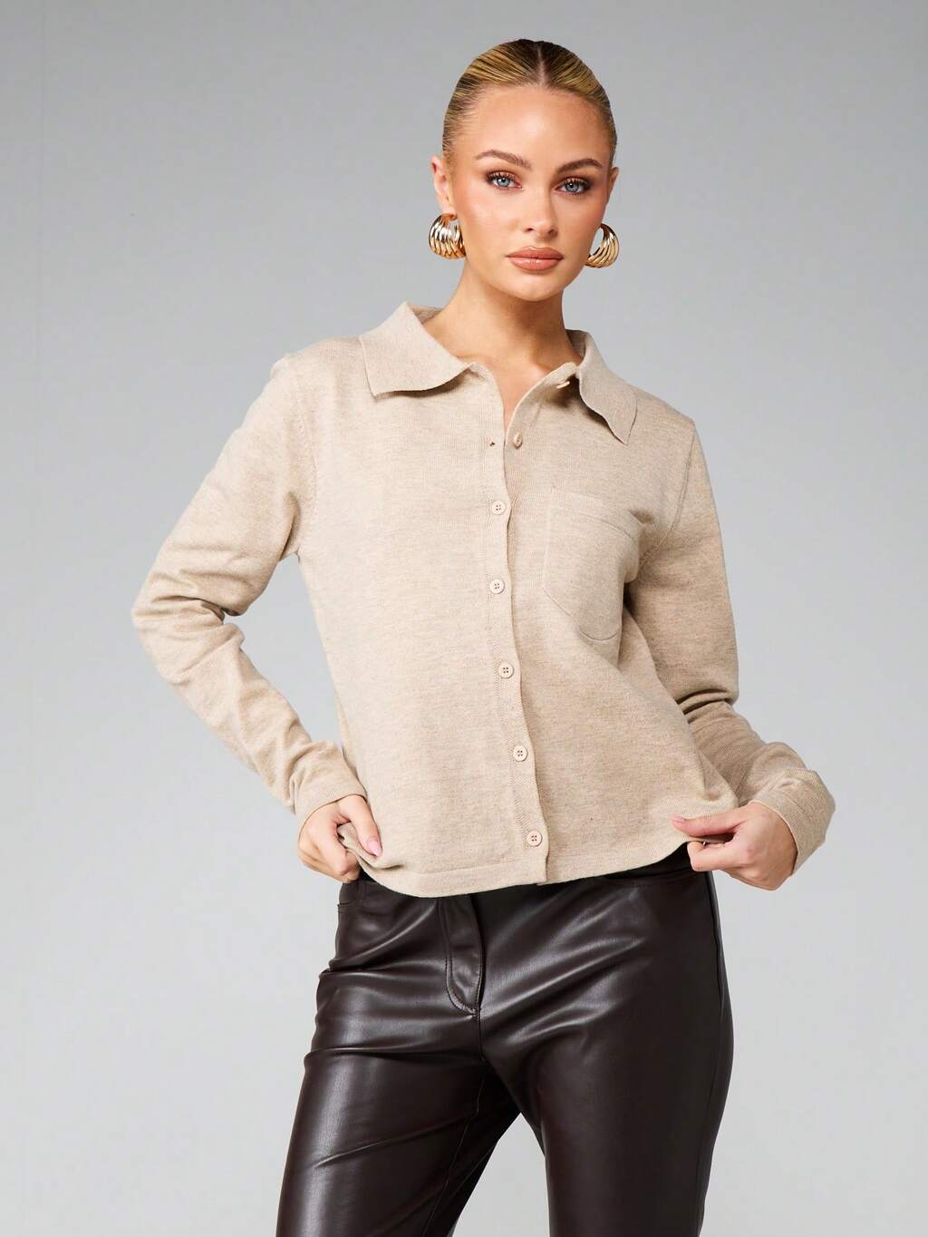 MISSGUIDED Langärmliges Strickhemd mit Knopfleiste