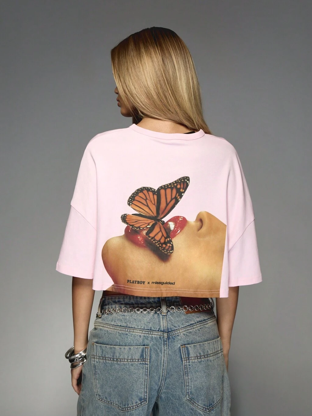 Missguided x Playboy Kurzes T-Shirt mit Schmetterlings-Print