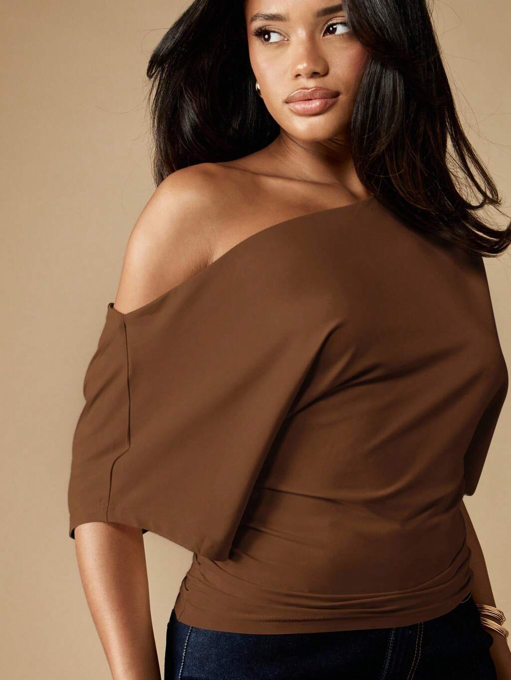 MISSGUIDED Schulterfreies Fledermausärmel-Oberteil mit gerüschtem Detail