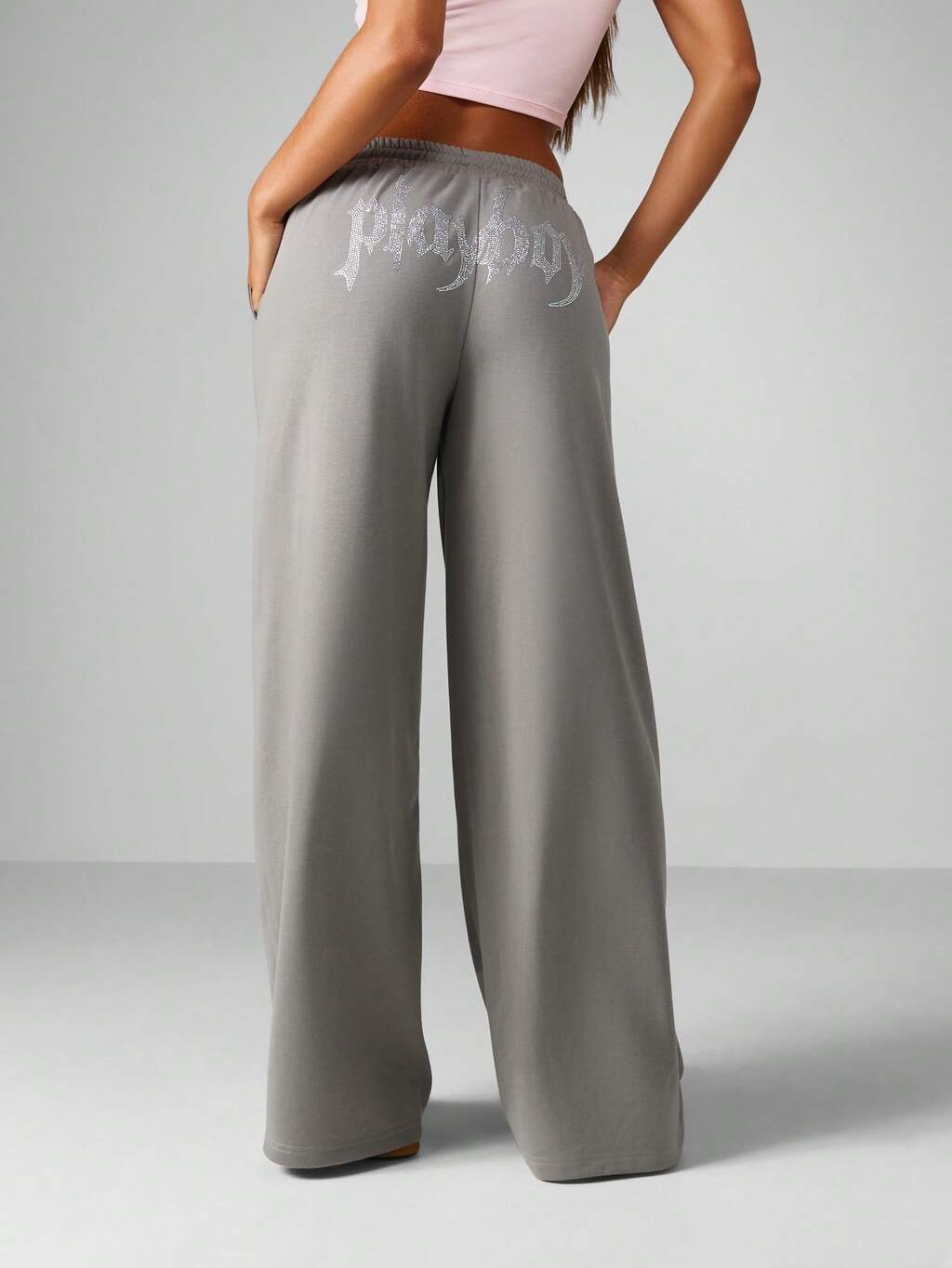 Missguided x Playboy Lässige Hose mit weitem Bein und Kristallflammen-Design