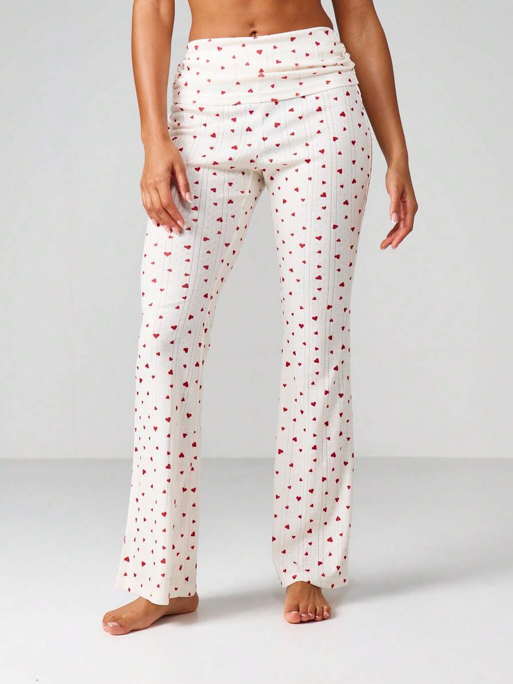 MISSGUIDED Loungehose mit Herzmuster und umklappbarem Bund
