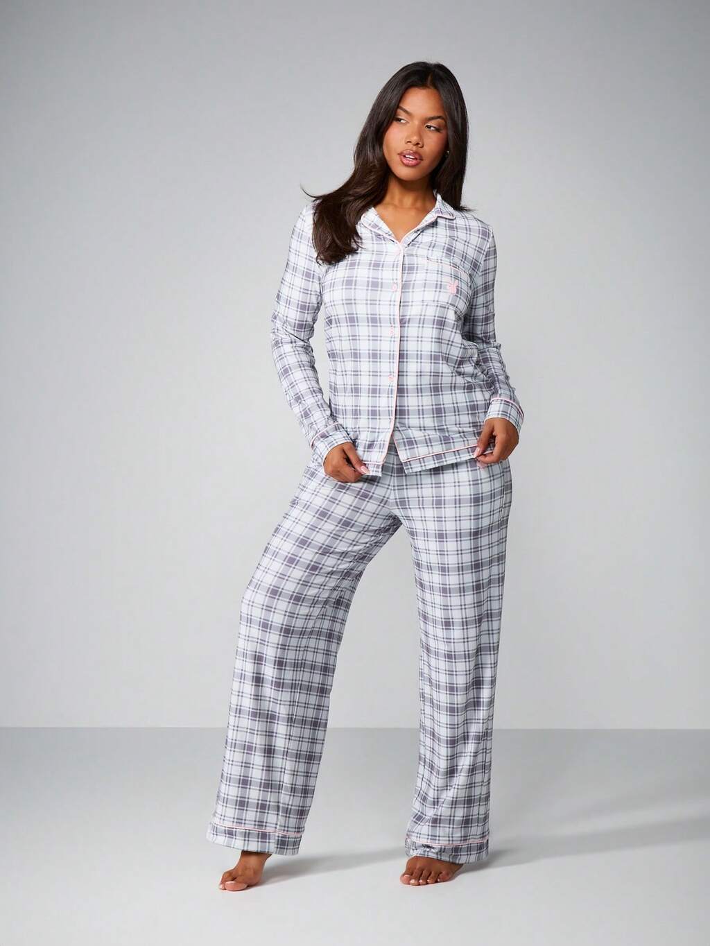 Missguided x Playboy Rosa kariertes Pyjama-Set mit Knopfleiste