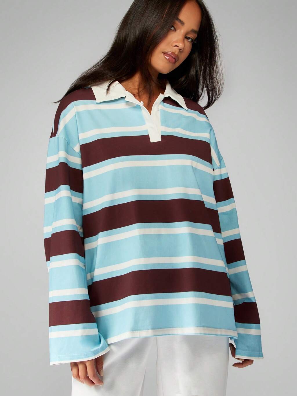 MISSGUIDED Gestreiftes Rugby-Poloshirt mit kontrastierendem Kragen und Bündchen