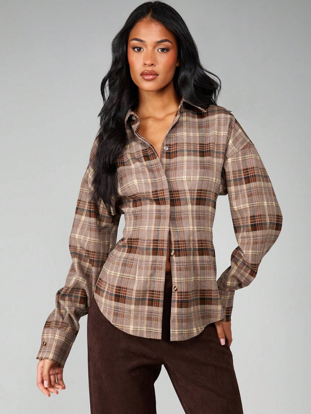 MISSGUIDED Bluse mit Karomuster, Kragen und Taillengürtel