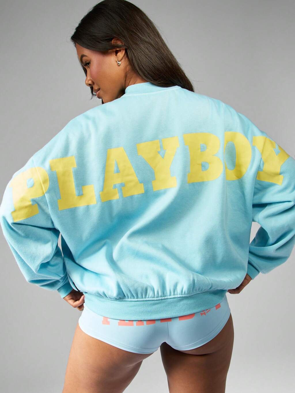 Missguided x Playboy Übergroßes, lässiges Sweatshirt im Bomberstil mit durchgehendem Reißverschluss