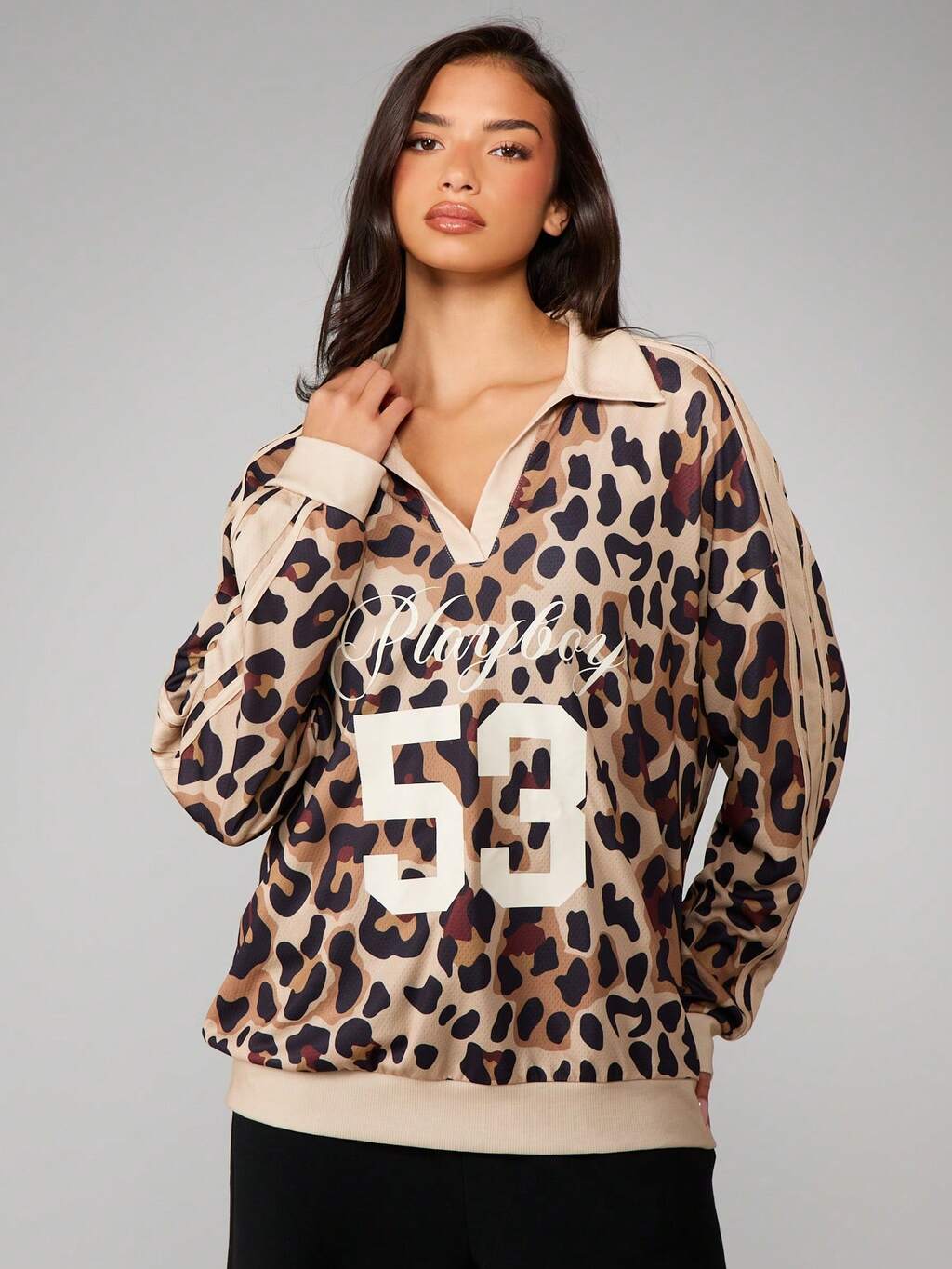 Missguided x Playboy Oversized-Sweatshirt mit Leopardenmuster und College-Grafik
