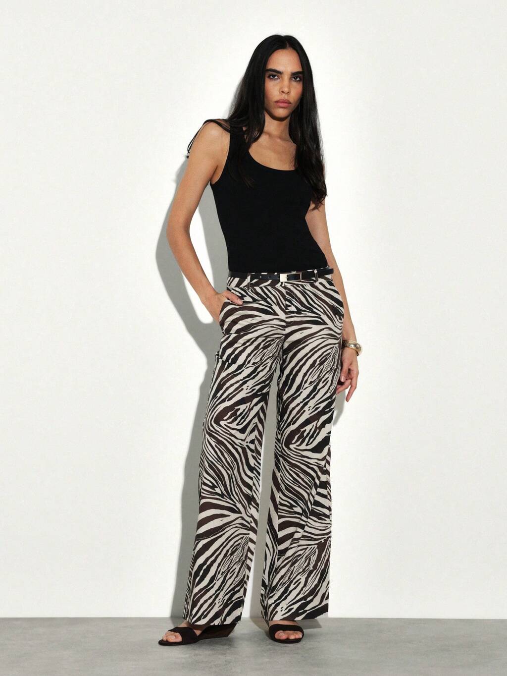 KSTM Damen Hochtaillierte Weite Bein Palazzohose mit Zebramuster und fließender Silhouette für lässigen Sommerstil