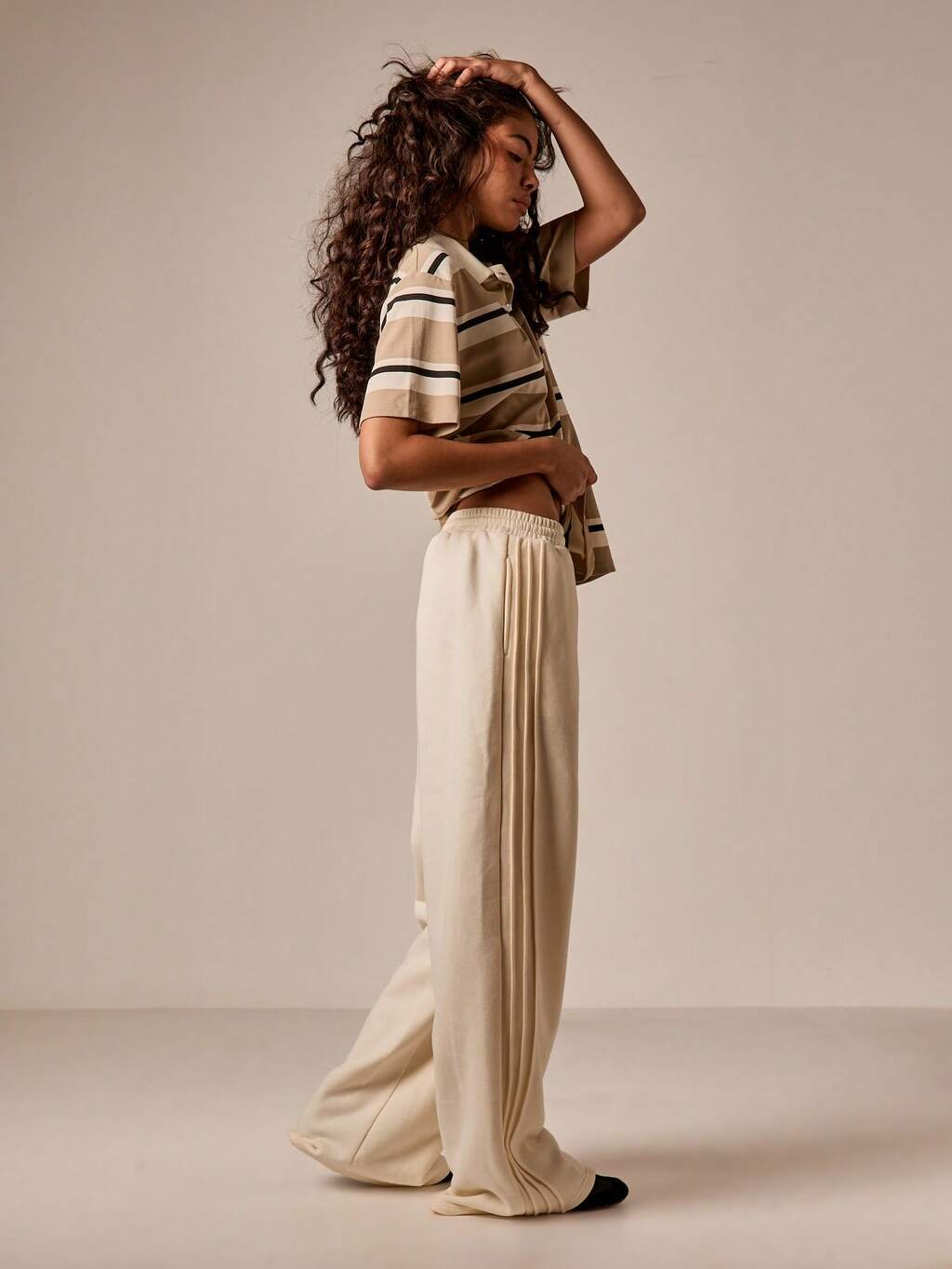 AiiRZ Weite Bein Faltendetail Jogginghose für Damen aus weichem, komfortablem Stoff für Herbst Winter Lässig Loungewear, Relaxed Fit, hoher Bund