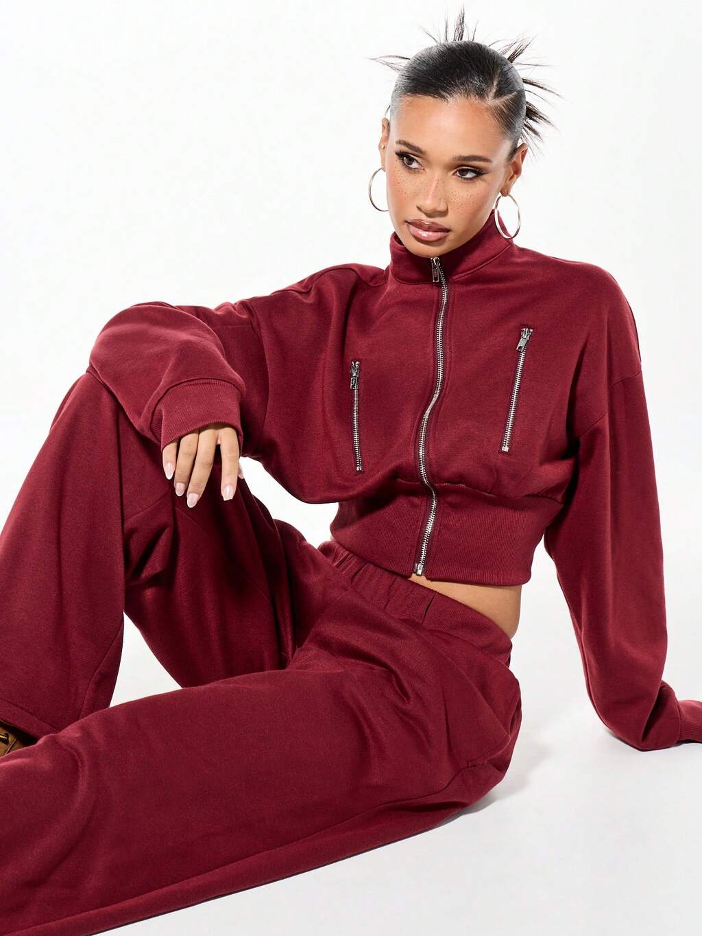 SUMWON WOMEN Oversized, kurzer, rechteckiger Reißverschluss-Pullover mit Trichter-Kragen für lässige Winterschichten