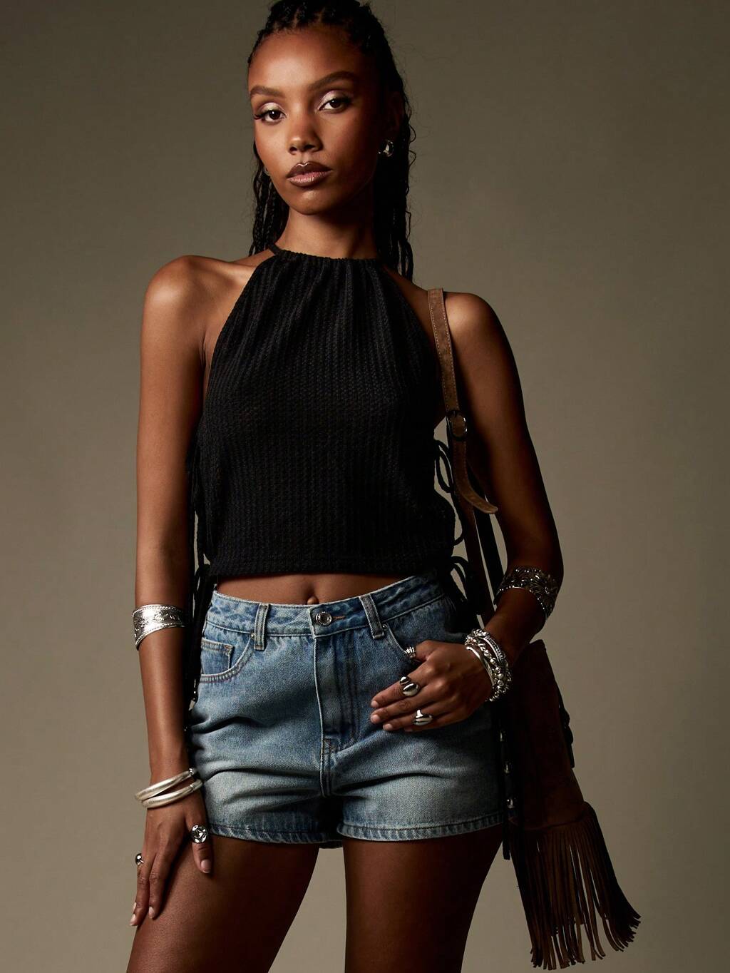 MISSGUIDED Neckholder-Crop-Top mit Rippstrick und Fransen