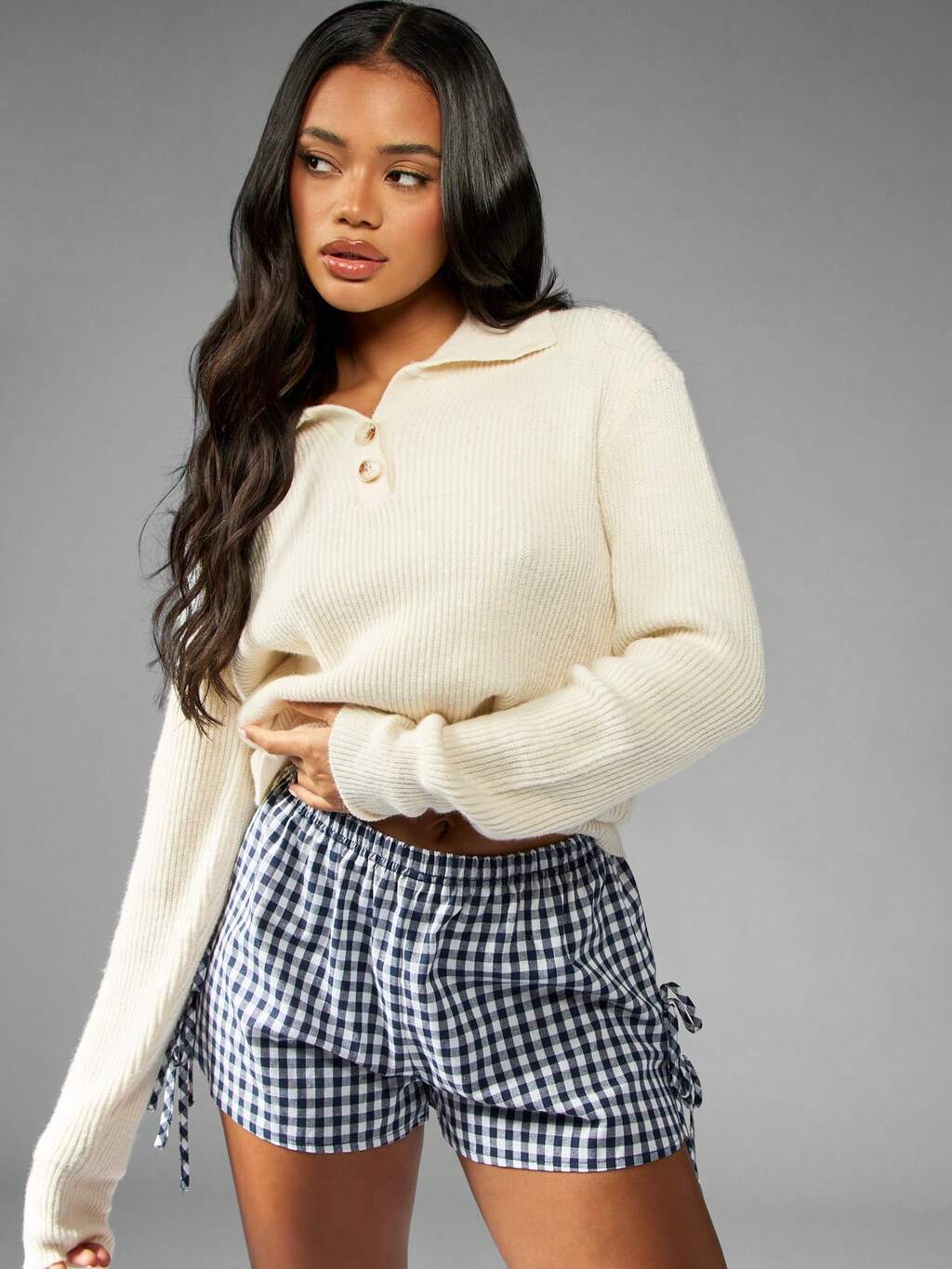 MISSGUIDED Rippstrickpullover mit Kragen und Knopfdetails