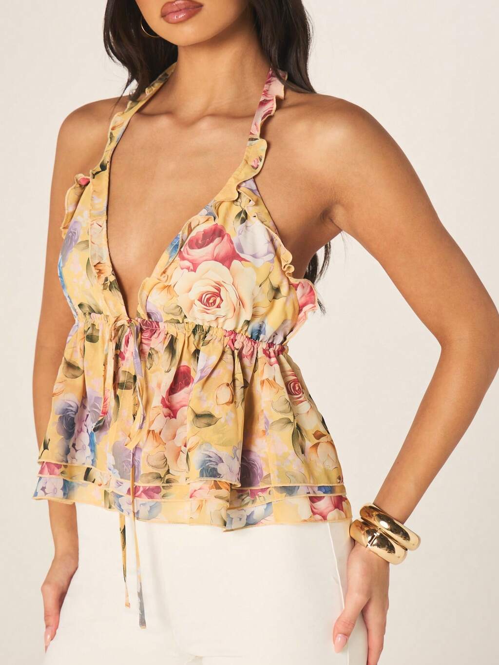 MISSGUIDED Neckholder-Top mit Blumenmuster und Rüschenbesatz
