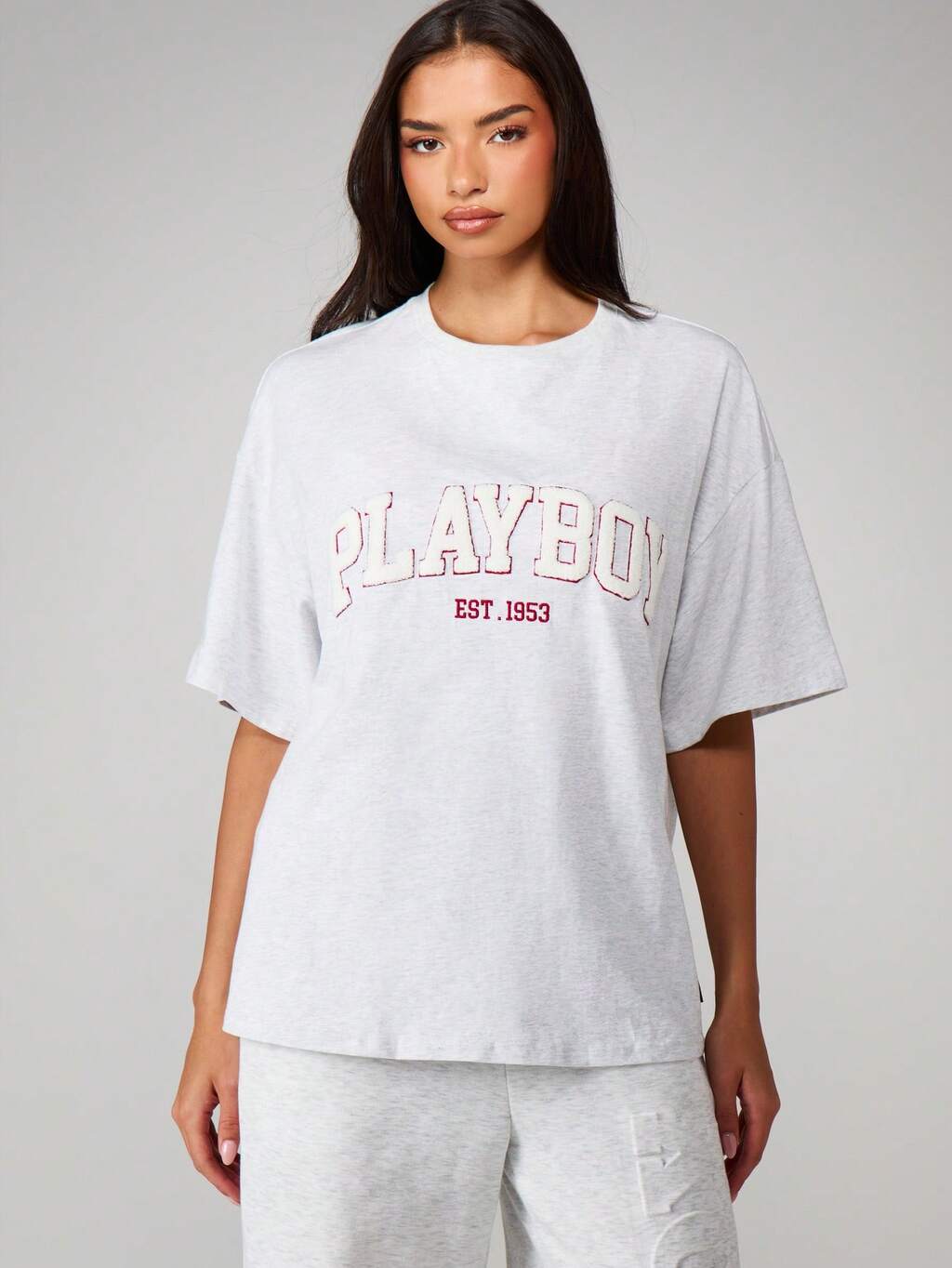 Missguided x Playboy Oversize-T-Shirt mit Rundhalsausschnitt und Grafikprint sowie Sportlogo