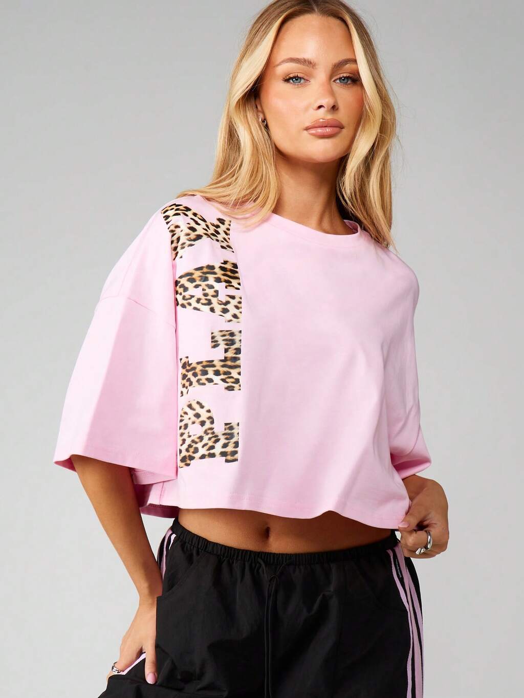 Missguided x Playboy Oversize-Kurz-T-Shirt mit Leopardenmuster