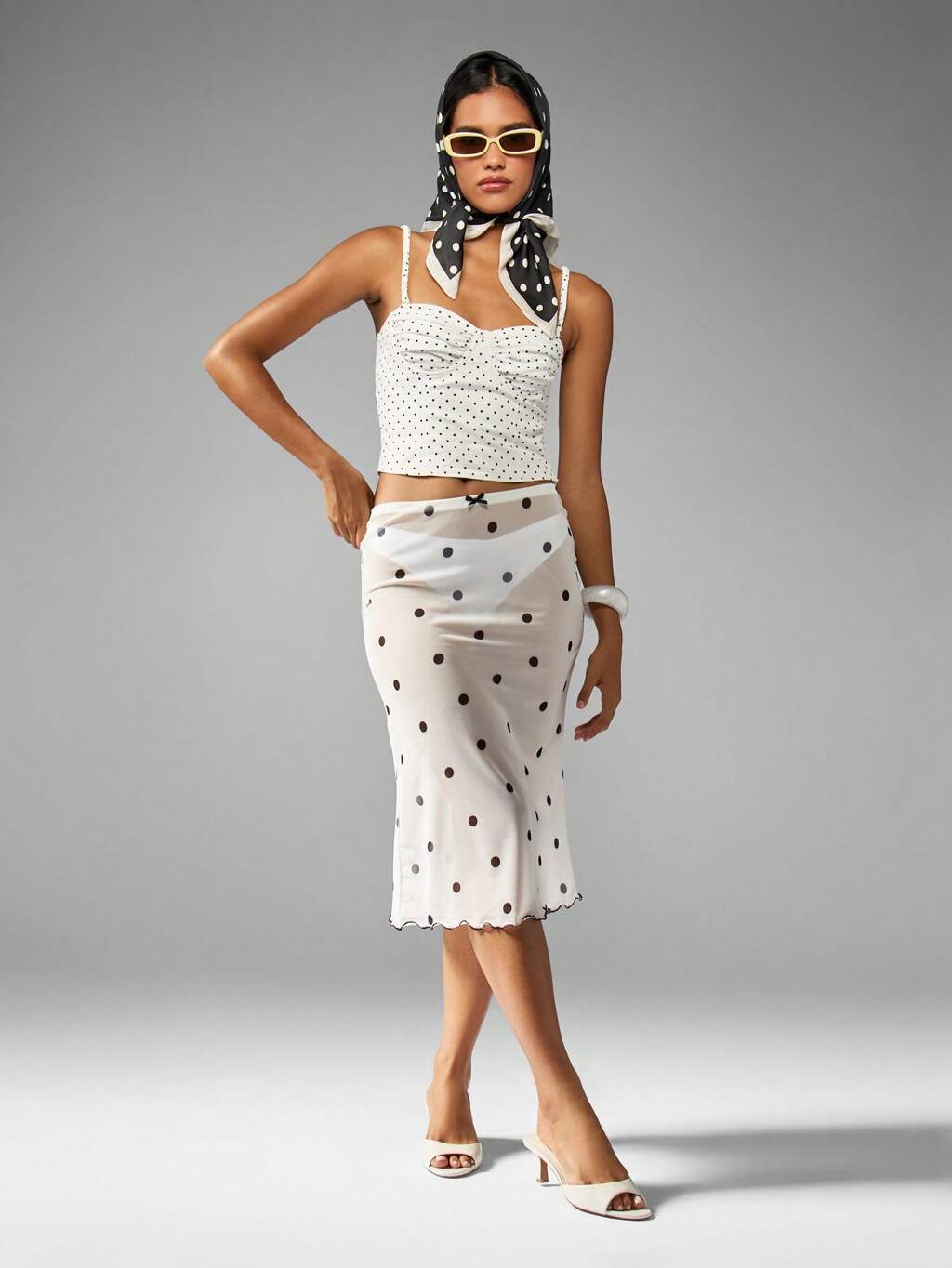 MISSGUIDED Midirock mit Punkten und Rüschensaum