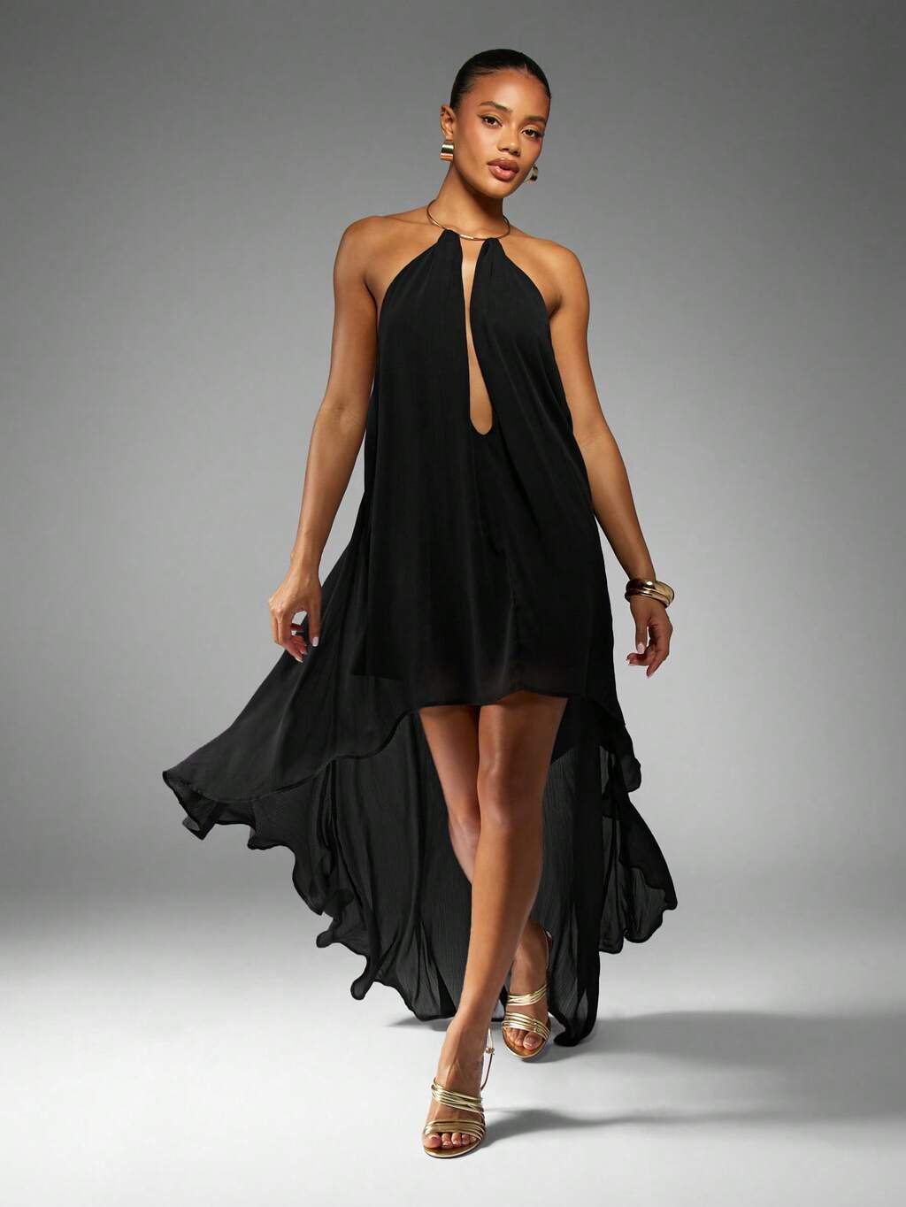 MISSGUIDED Asymmetrisches Chiffon-Maxikleid mit Neckholder