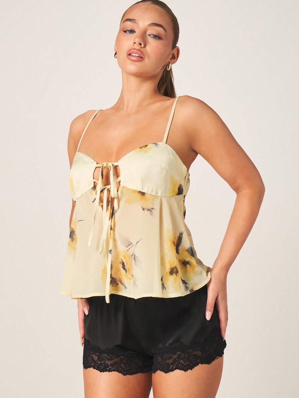MISSGUIDED Camisola babydoll floral con detalle de lazo