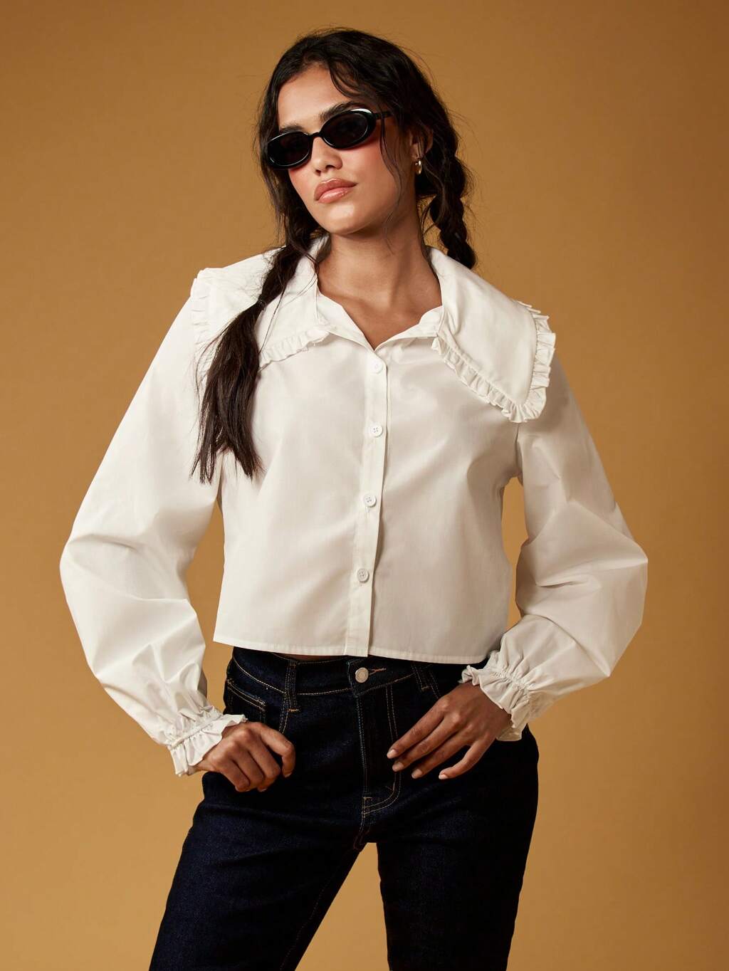MISSGUIDED Blusa elegante de algodón estilo victoriano con cuello Peter Pan, mangas largas y volantes, botones y botones