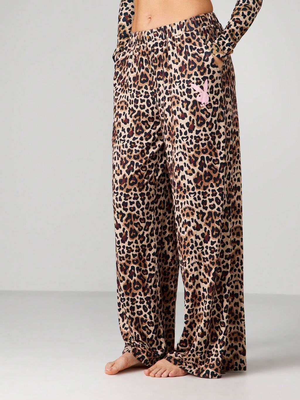 Missguided x Playboy Pantalón de pijama con estampado de leopardo y cordón ajustable