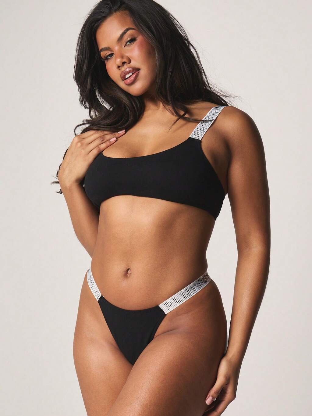 MISSGUIDED Bralette triangular con tirantes elásticos y purpurina brillante