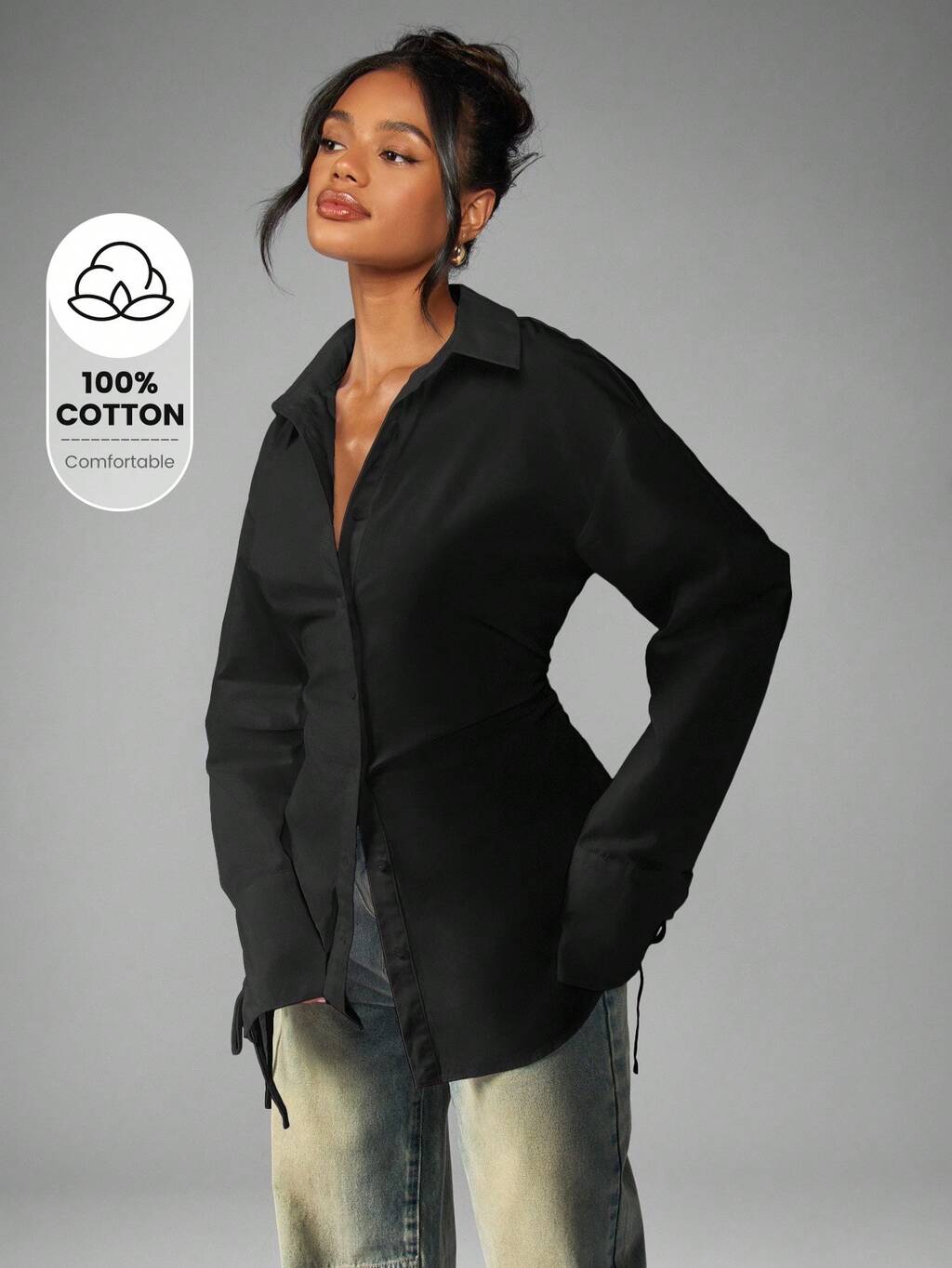 MISSGUIDED Blusa con botones, cintura fruncida y puños anudados