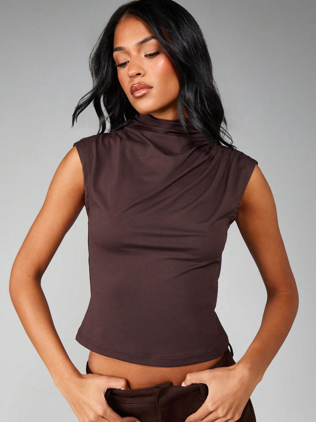 MISSGUIDED Top fruncido sin mangas con cuello alto y drapeado