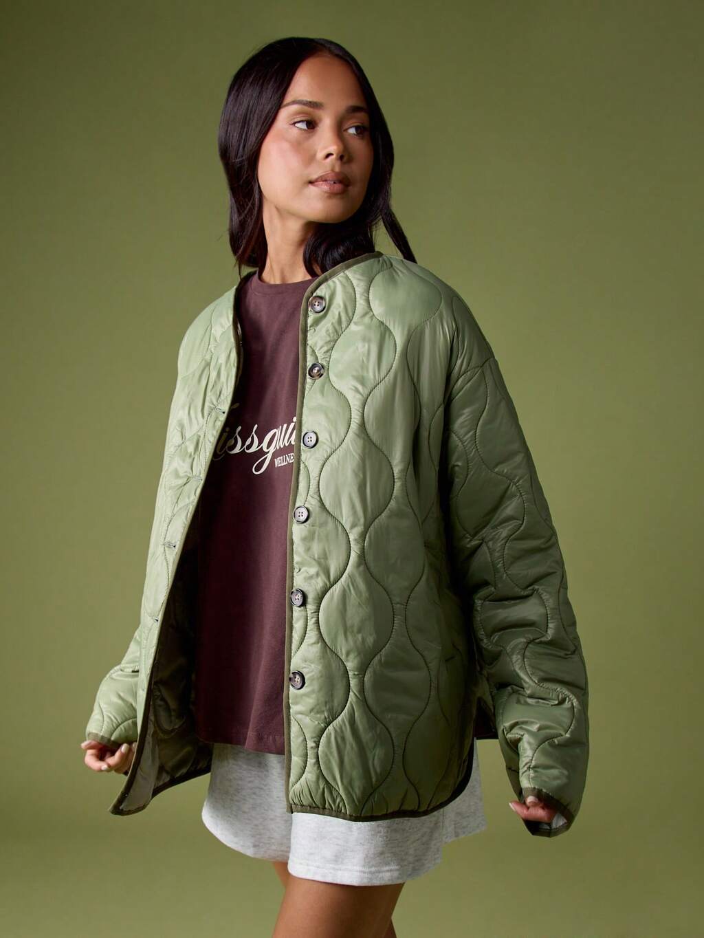 MISSGUIDED Chaqueta acolchada extragrande con botones en la parte delantera y parche del logotipo