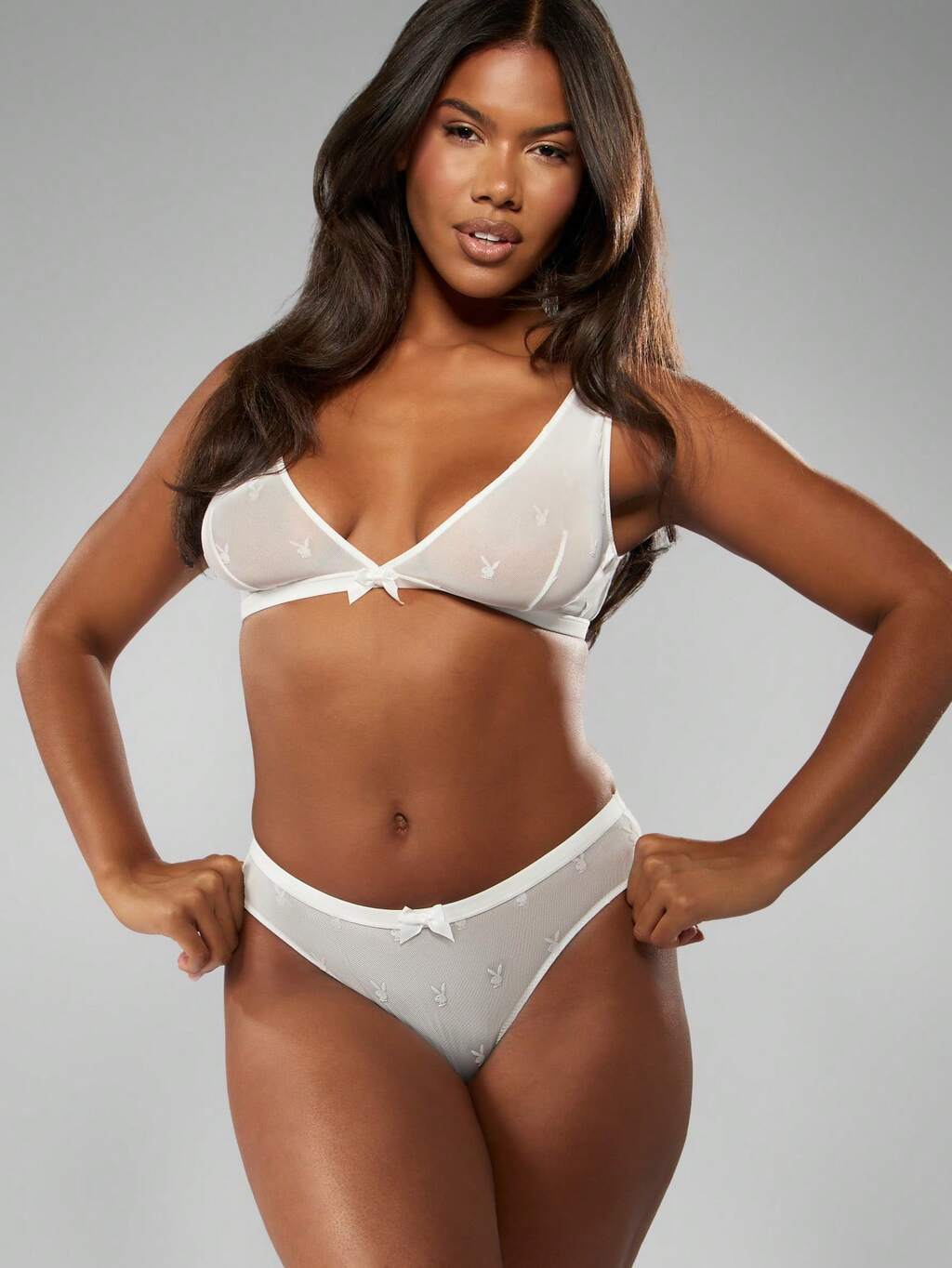 Missguided x Playboy Conjunto de bralette y braguita de malla con estampado de conejito