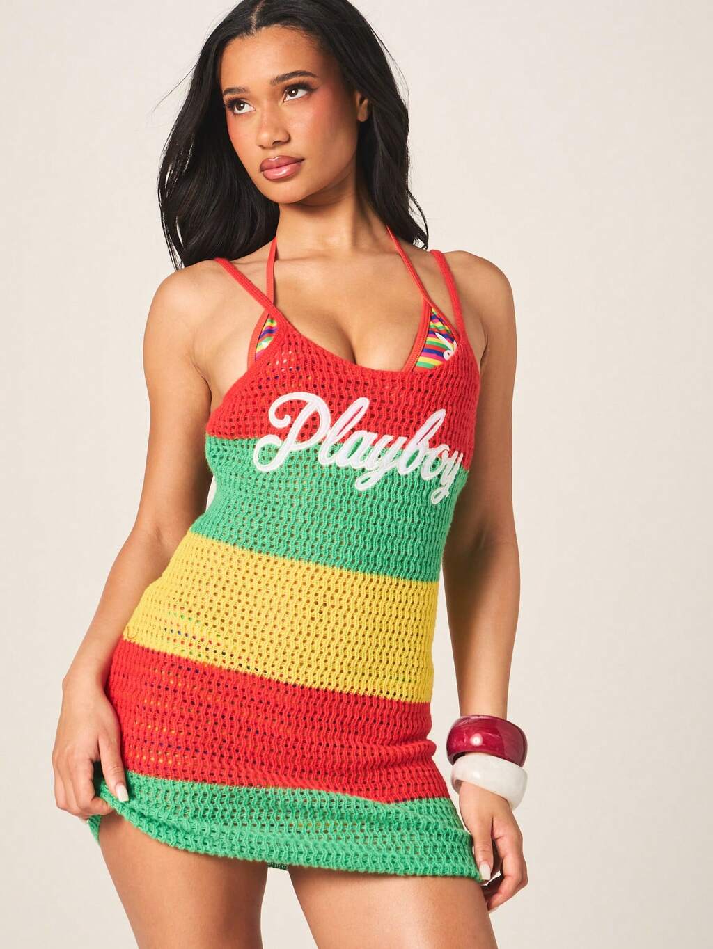 Missguided x Playboy Minivestido halter de rayas de crochet