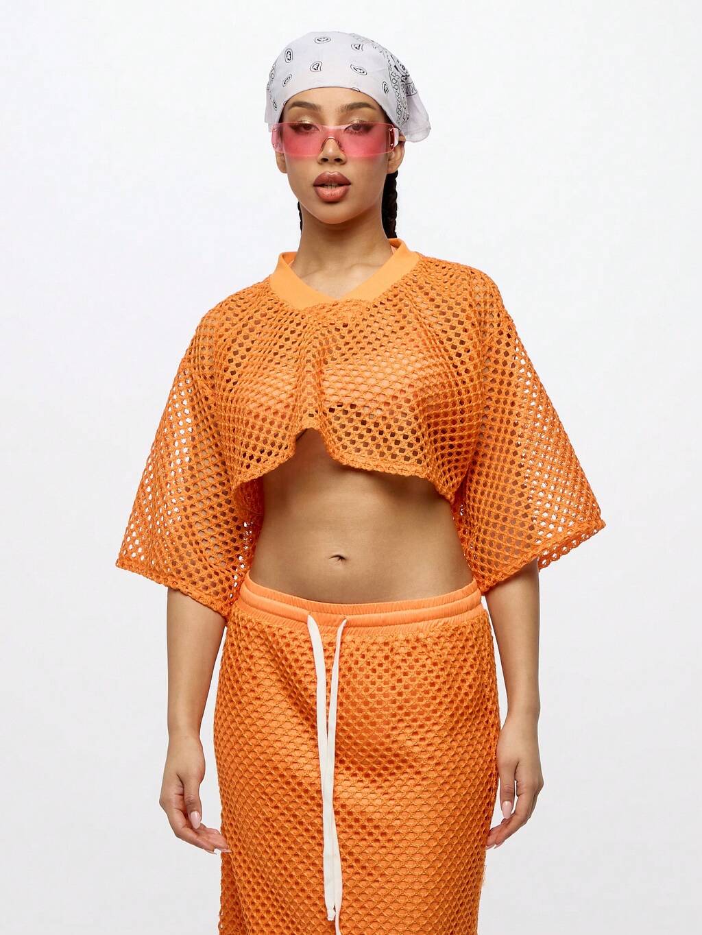 SUMWON WOMEN Top corto de malla de red de pesca, estilo veraniego, de tejido de ganchillo, con ajuste holgado, estilo bohemio y urbano, como cubierta para la playa