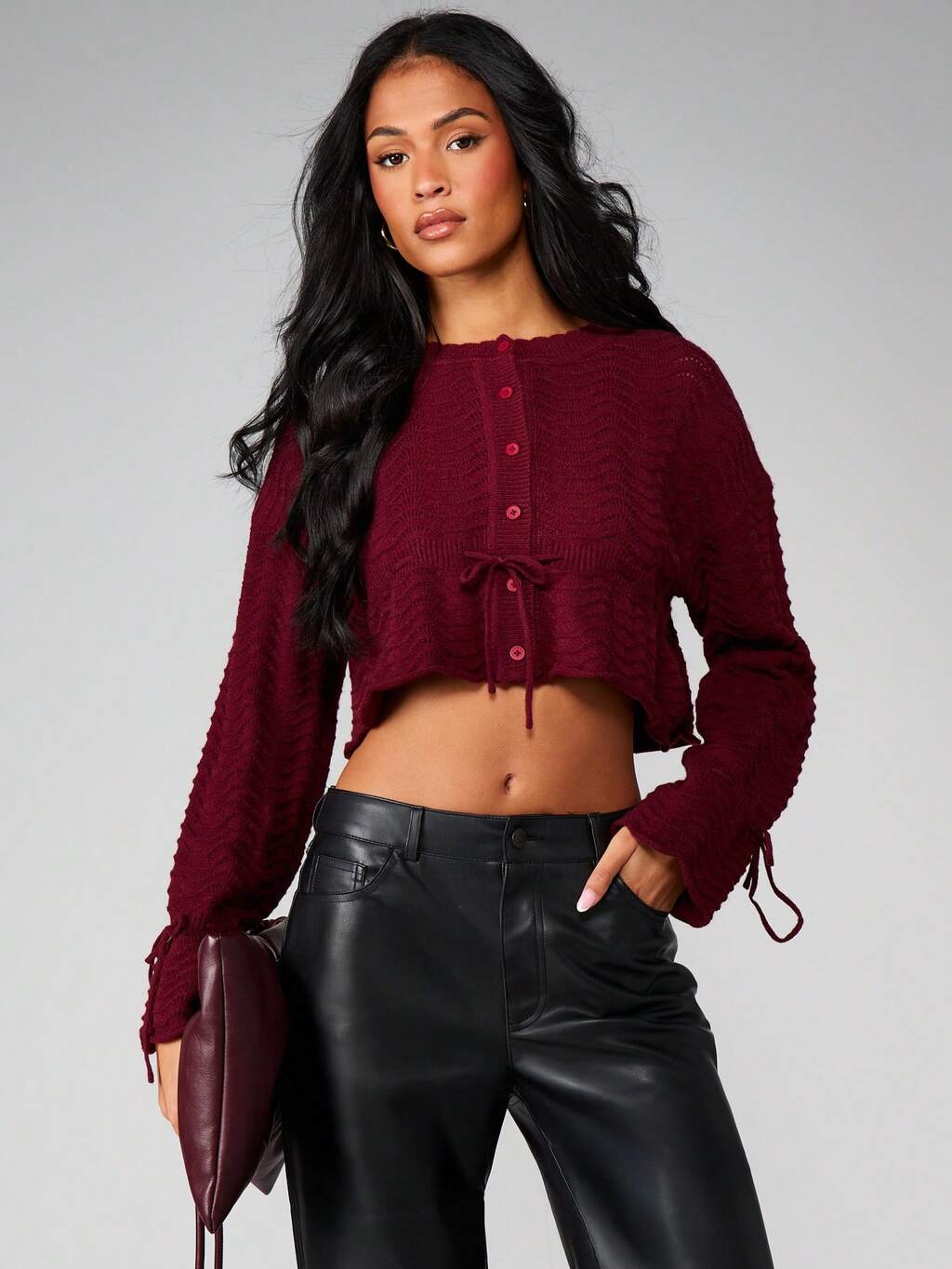 MISSGUIDED Cárdigan corto de punto trenzado con detalle de lazo para Navidad