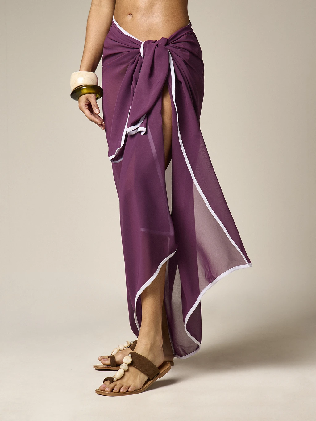 AiiRZ Falda pareo de gasa con detalle de ribete blanco contrastante, estilo envolvente, prenda de playa fluida para vacaciones de verano y resort